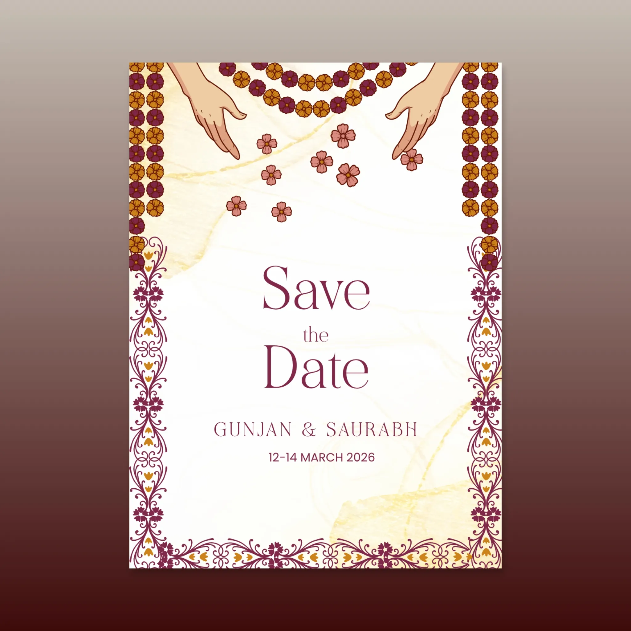 Our designers personalize your card and send the final file, usually within 1–2 business days. Share it instantly with guests on WhatsApp, email, or social media.