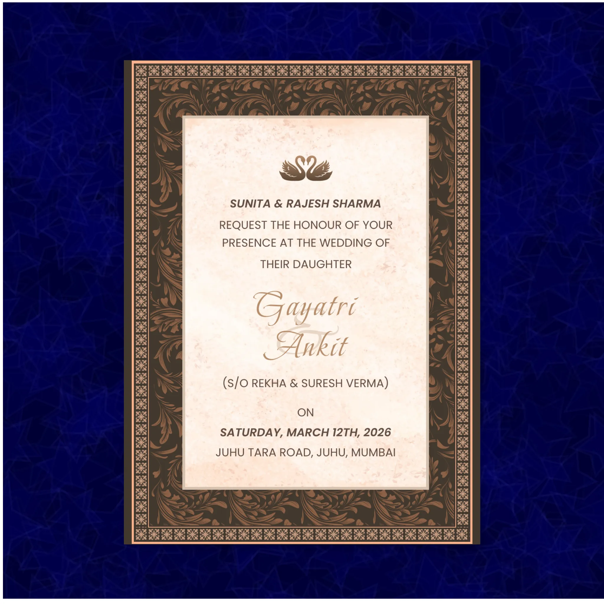 Turn your love story into a cinematic wedding invitation – complete with music, blessings, and every moment that matters Every detail is crafted to make your invitation personal, elegant, and unforgettable.