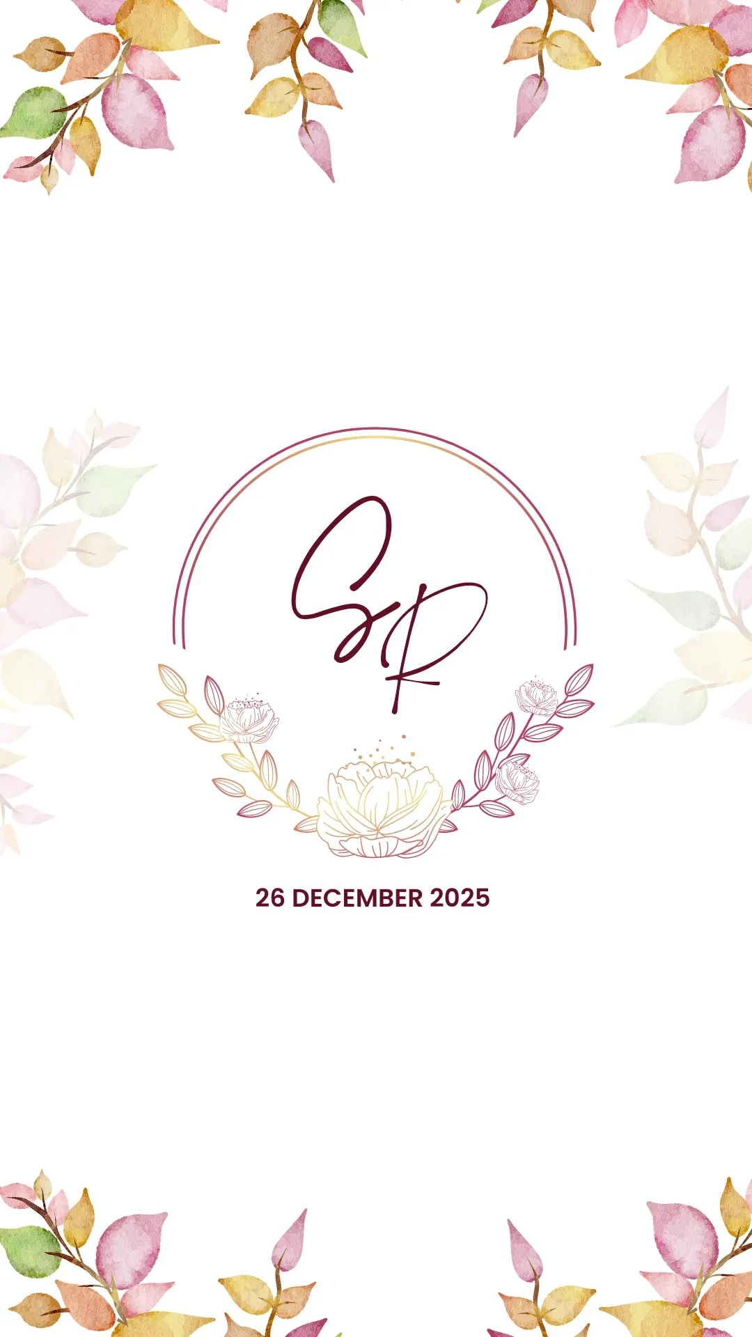 This multi-event video design features rich watercolor borders filled with deep red and orange florals, creating a romantic, festive ambiance. An elegant looping script highlights the couple’s names, paired with a clean sans-serif font for all event details. Blending earthy warmth with vibrant tones, this aesthetic offers a timeless look perfect for a traditional, love-filled celebration.