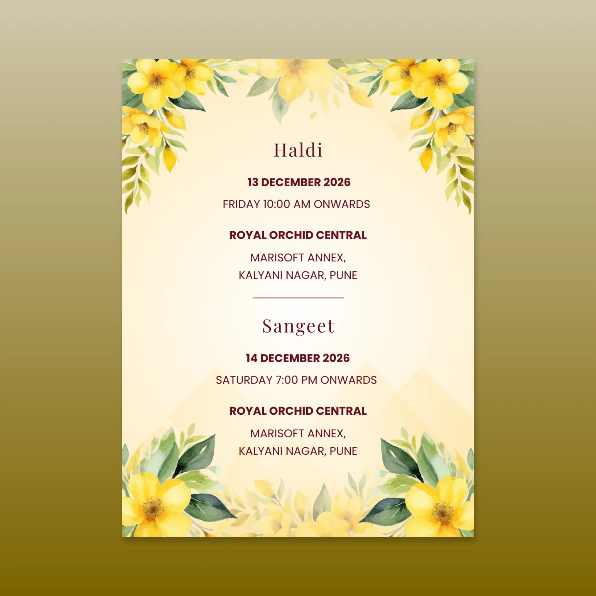 Name your events as creatively or traditionally as you wish — “Ananya’s Haldi,” “Rohan’s Baarat,” or “Sufi Night with Friends” — your card, your way.