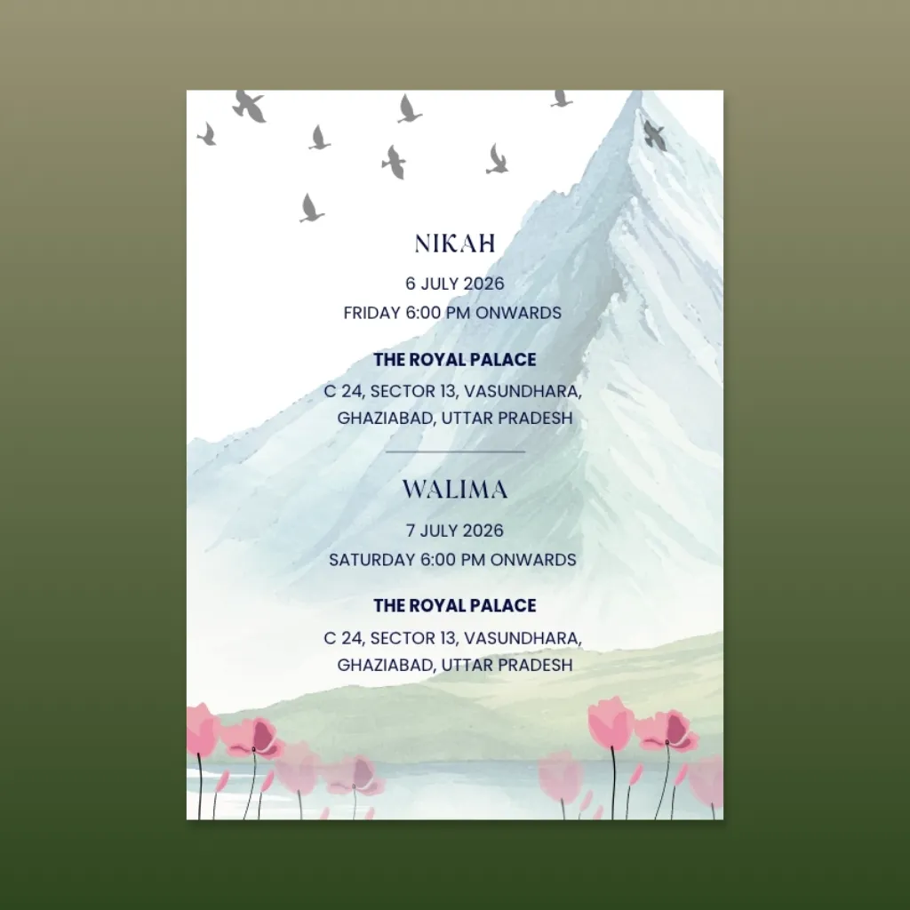 Our designers personalize your card and send the final file, usually within 1–2 business days. Share it instantly with guests on WhatsApp, email, or social media.