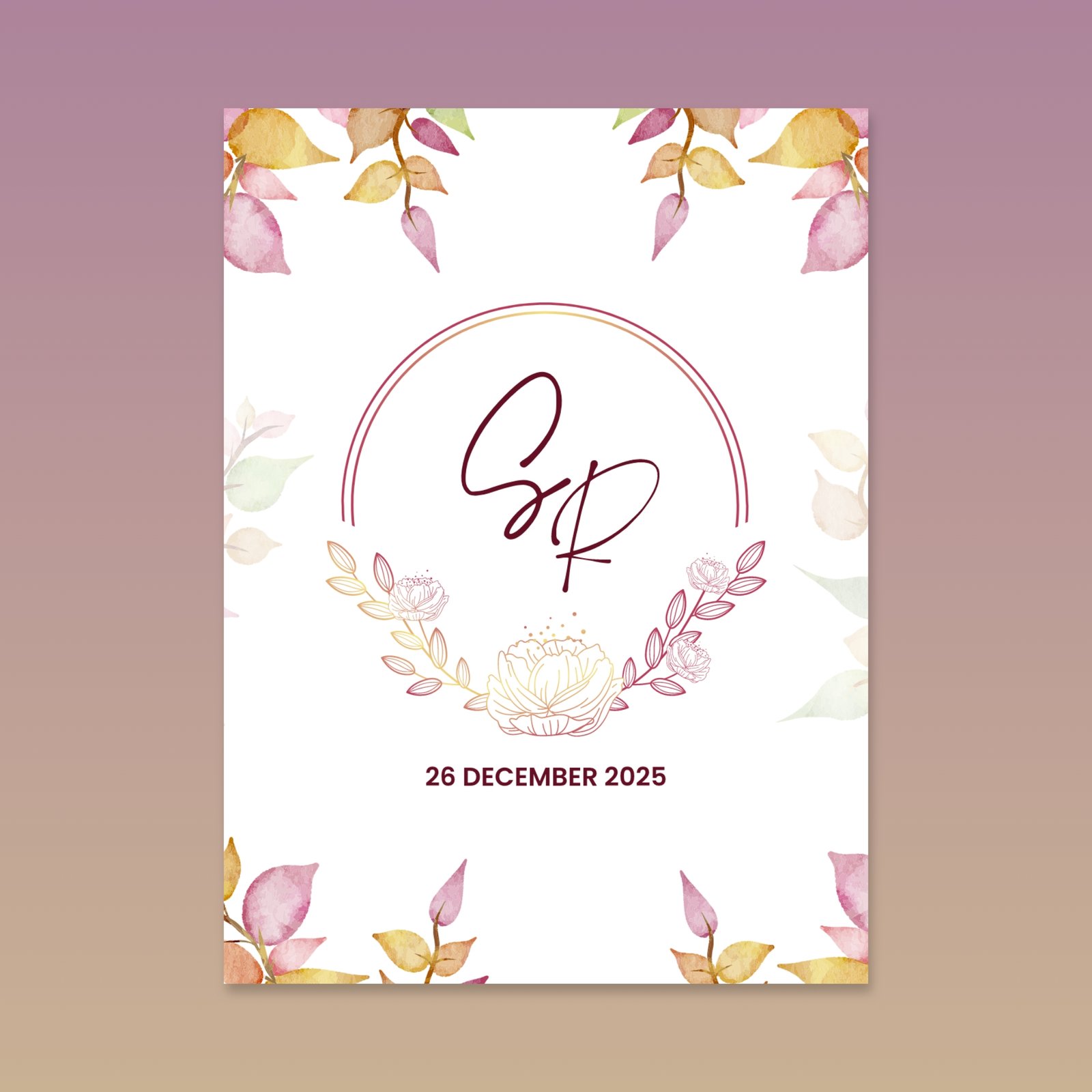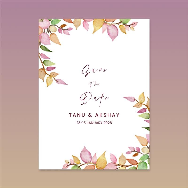 This multi-page invitation is defined by its rich watercolor borders of deep red and orange florals, creating a highly romantic and festive atmosphere. It is a complete wedding suite, providing dedicated pages for Haldi, Sangeet, Wedding, and Reception. The design uses a beautiful contrast between an elegant, looping script font for the couple’s names and a clean sans-serif font for event details. This earthy yet vibrant aesthetic is a timeless choice for a traditional and loving celebration.