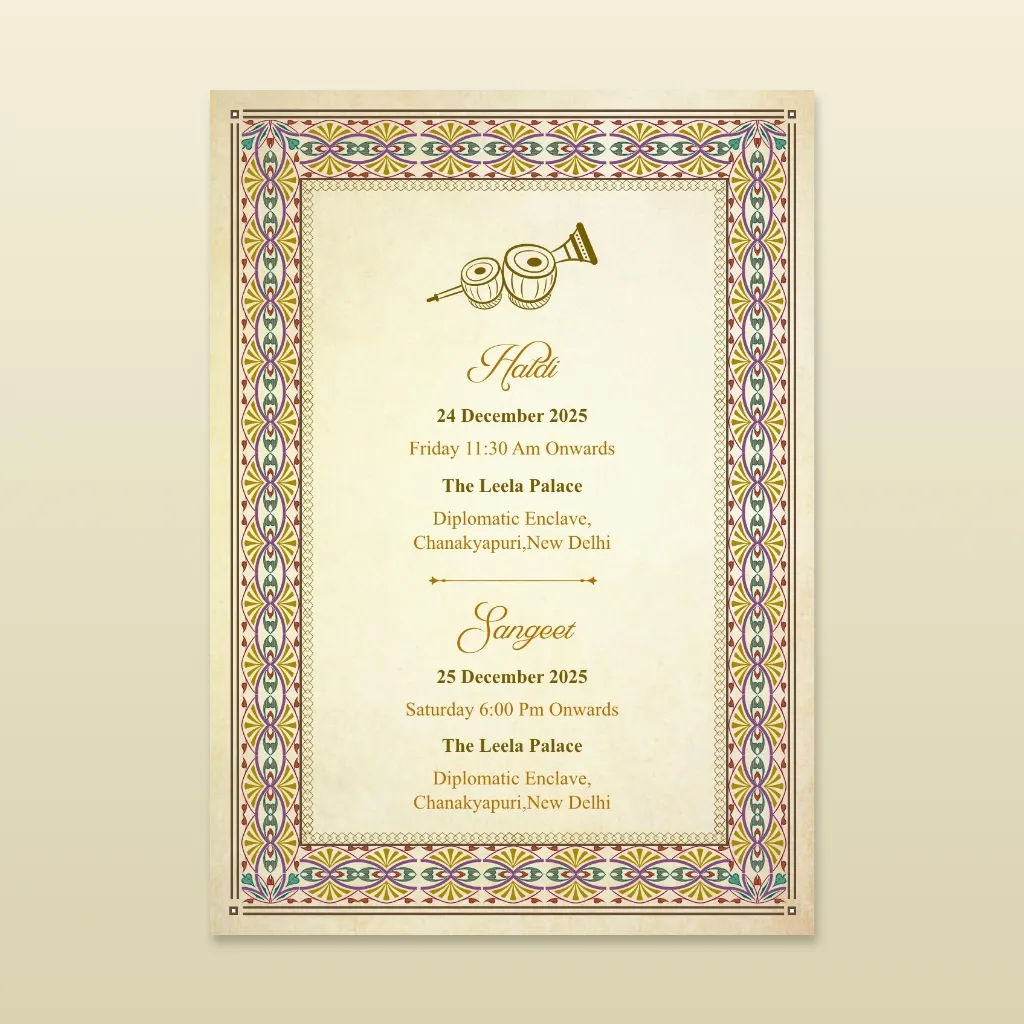 Name your events as creatively or traditionally as you wish — “Ananya’s Haldi,” “Rohan’s Baarat,” or “Sufi Night with Friends” — your card, your way.
